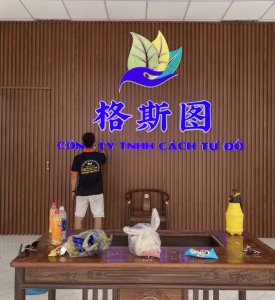 VÁCH NGĂN NHỰA COMPOSITE GIẢ GỖ LÀM VÁCH NGĂN VĂN PHÒNG + LOGO CÔNG TY