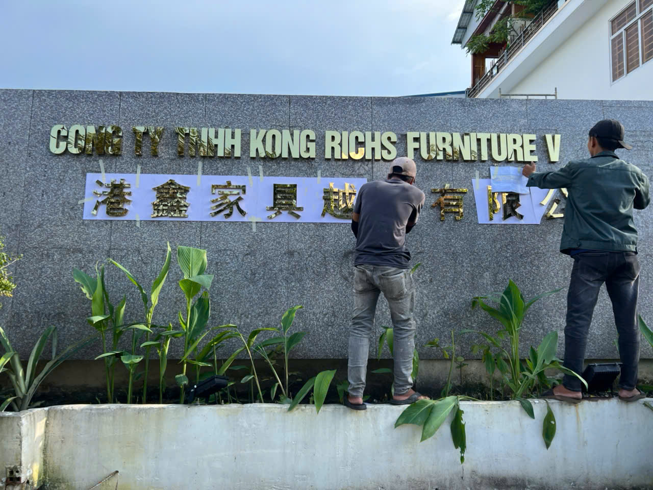 Gia công chữ nổi Inox và nền bảng tại xưởng.